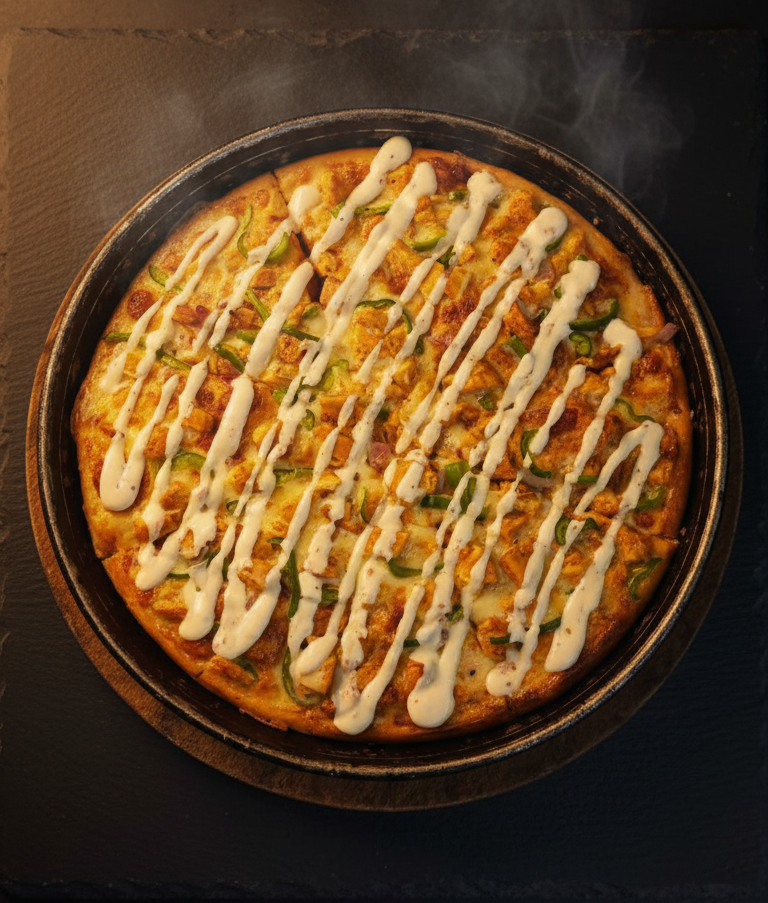 Turn up the flavor with Legend Cafe’s Chicken Fajita Pizza – topped with juicy fajita-style chicken, colorful bell peppers, onions, mozzarella cheese, and our special tangy sauce, all on a crispy, golden crust.