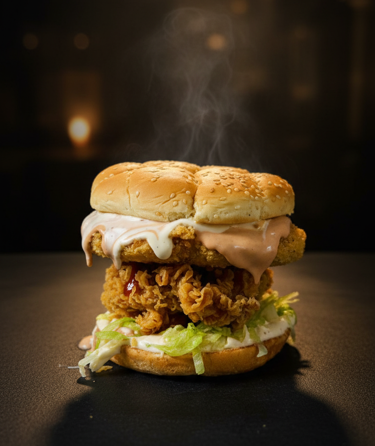 Together, these ingredients come together in a burger that’s simultaneously crunchy, cheesy, fresh, and flavorful—a love letter to indulgence with a spicy kick.